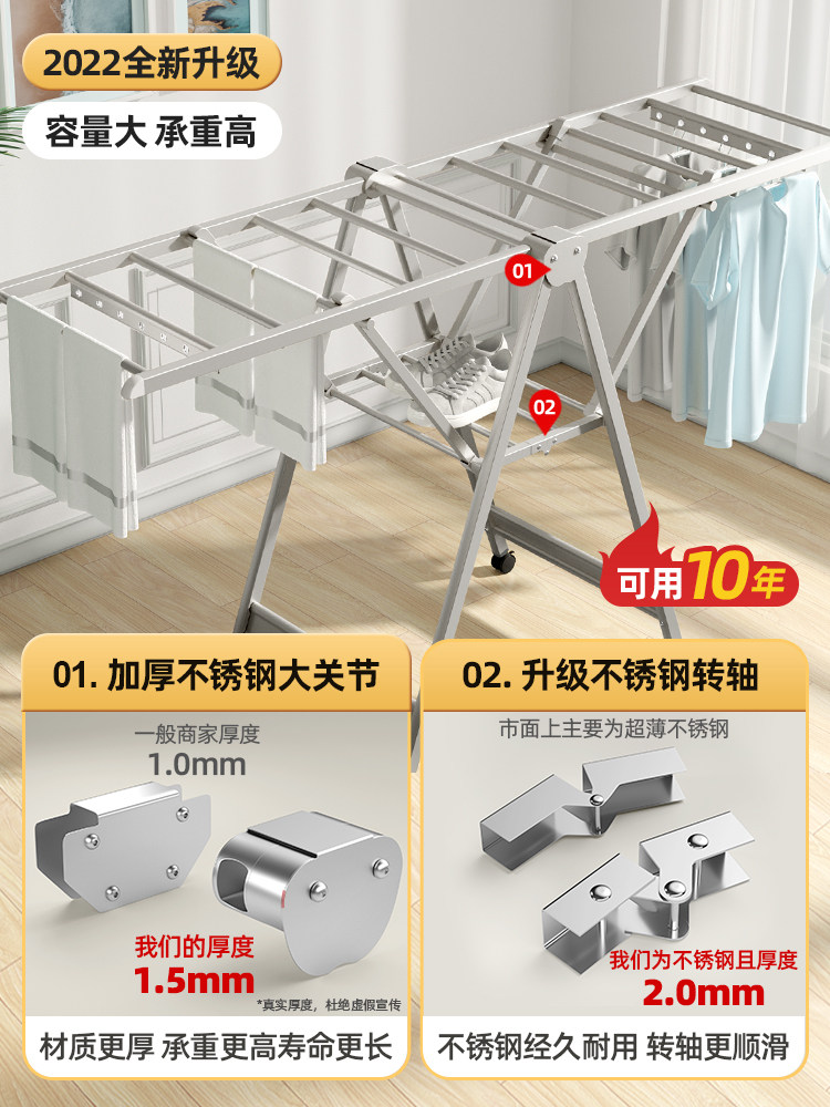 Clothes hanger floor folding indoor balcony drying quilt artifact aluminum alloy can dry clothes hanger household cool clothes pole