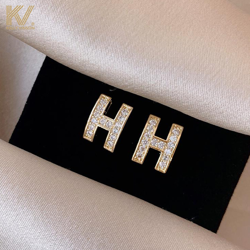H-letter ear nailsPremium cold wind anti-allergic silver needle earringsGentle high-luxury luxury earringsFashion