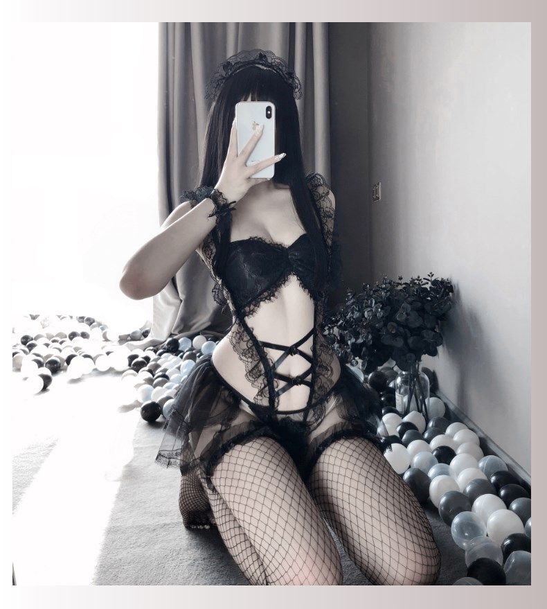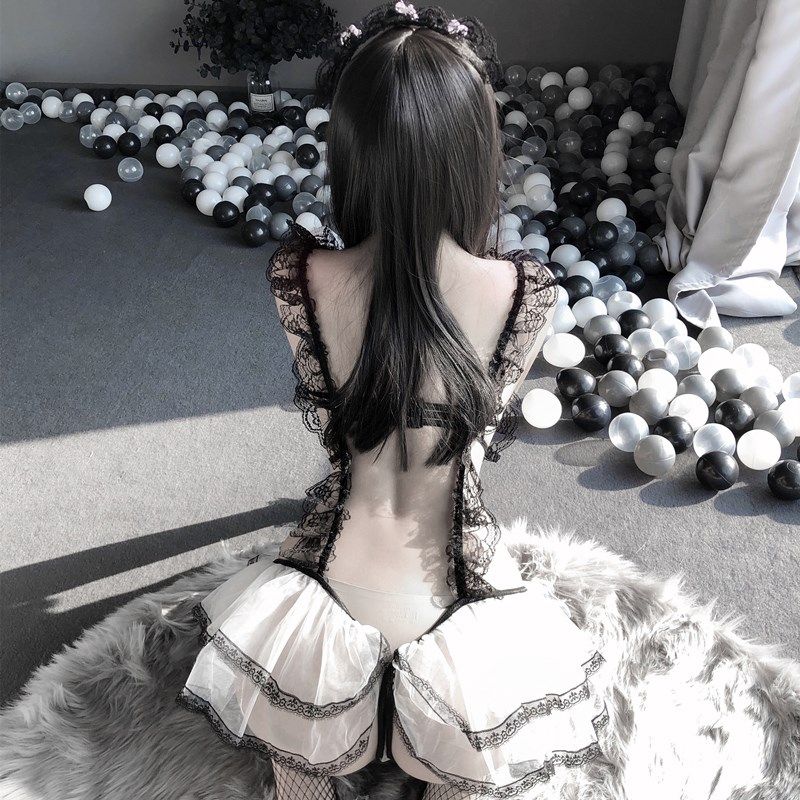 Erotic lingerie sexy provocative maid uniform open file free one-piece pajamas passion bed hollow lace suit