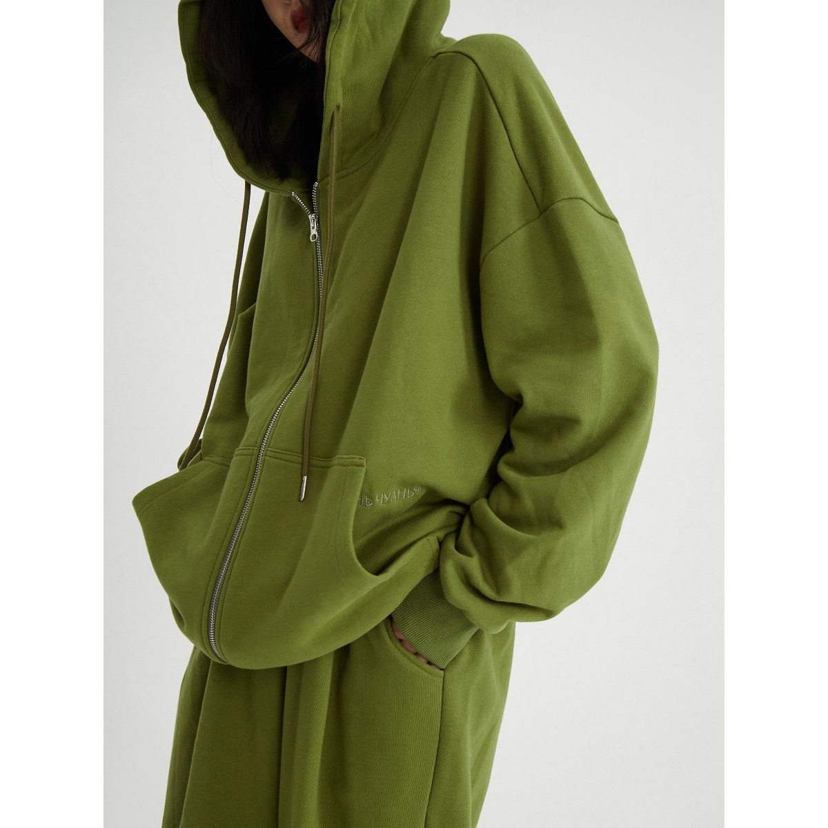THELGHT AUTUMN WINTER NEW PLUS SUEDE OVERSIZE LOOT Lazy Even Hat Sportswear Pants Suit Women Green Casual Sports