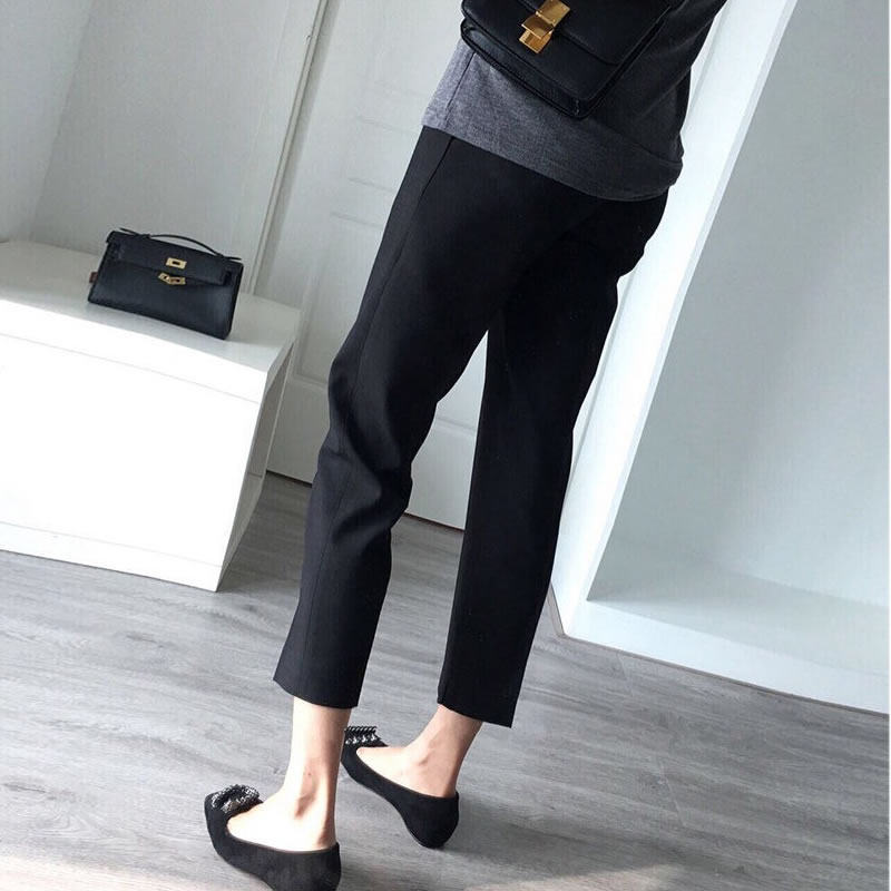 Korean version of pregnant women's trousers spring and autumn outerwear fashion foreign style casual trousers nine points wide-leg pants plus size pregnant women's bottoming pants