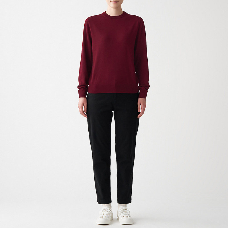 No print good products MUJI Women's wool mulberry silk washable round neckline sweater