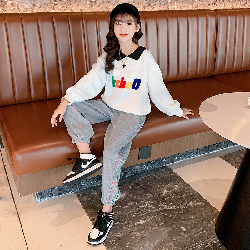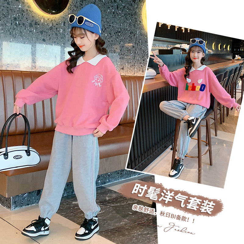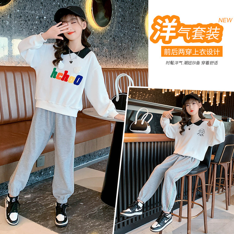 Girl Suit Autumn Clothing 2022 New Foreign Pie Big Boy Dress Long Sleeve Summer Girl Biface Wearing Two Sets of Tide