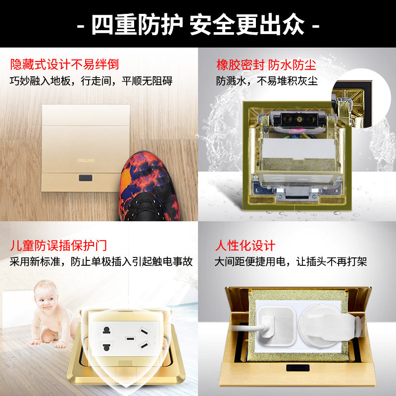 Dely West Ground Jack Socket Full Copper Waterproof Five Holes Ground Flip Concealed Home Seven Holes ten Holes Concealed 224-Taobao
