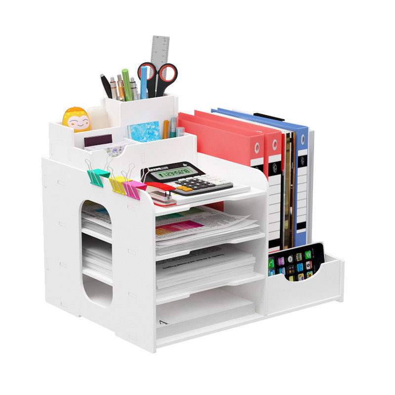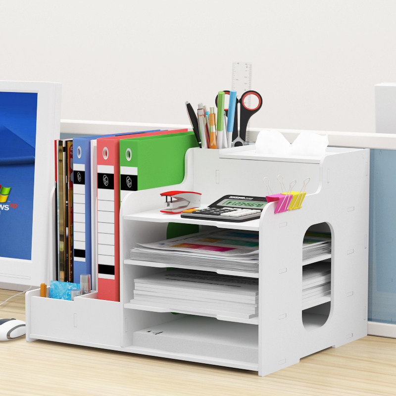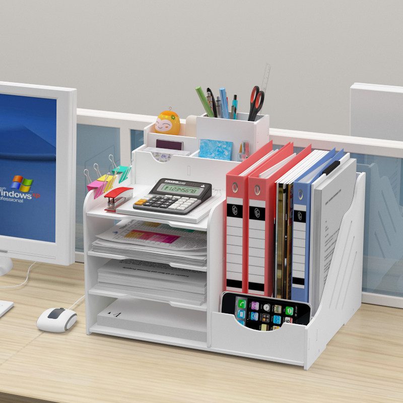 Simple table multi-layer file column desk data frame folder rack with pen holder multi-function book organizer box