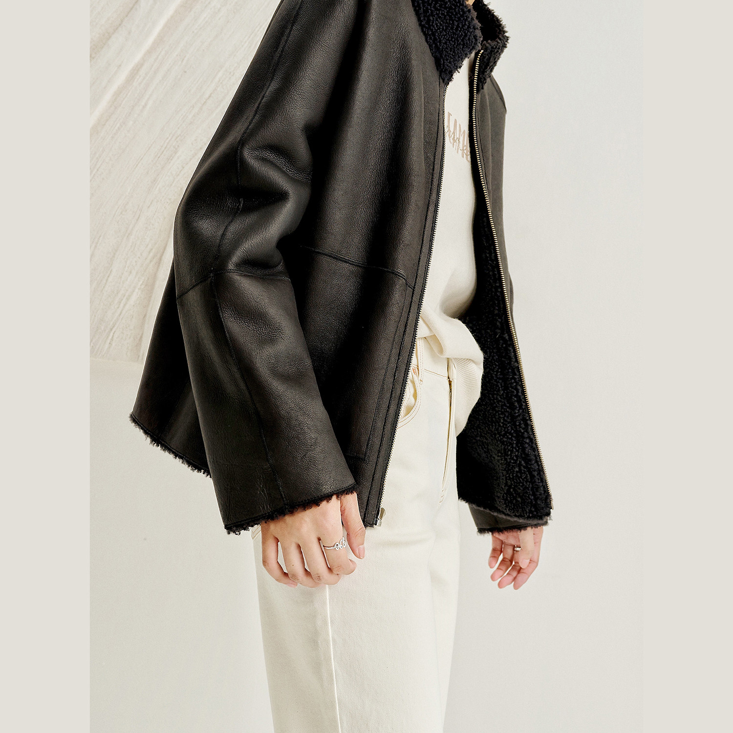 ^@^ ^(PC0726592) Exclusive Limited European LACON Soft Warm Skinny Double-faced Leather Coat