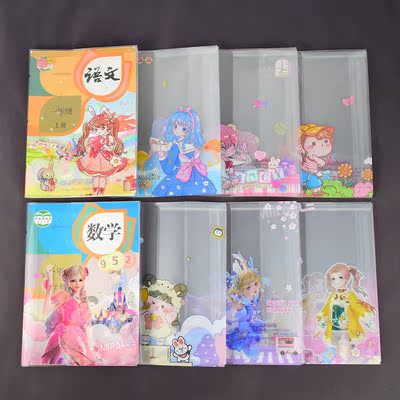 Primary school students book cover female grade one, two and three book protective sleeve cute cartoon transparent waterproof school bag book cover paper