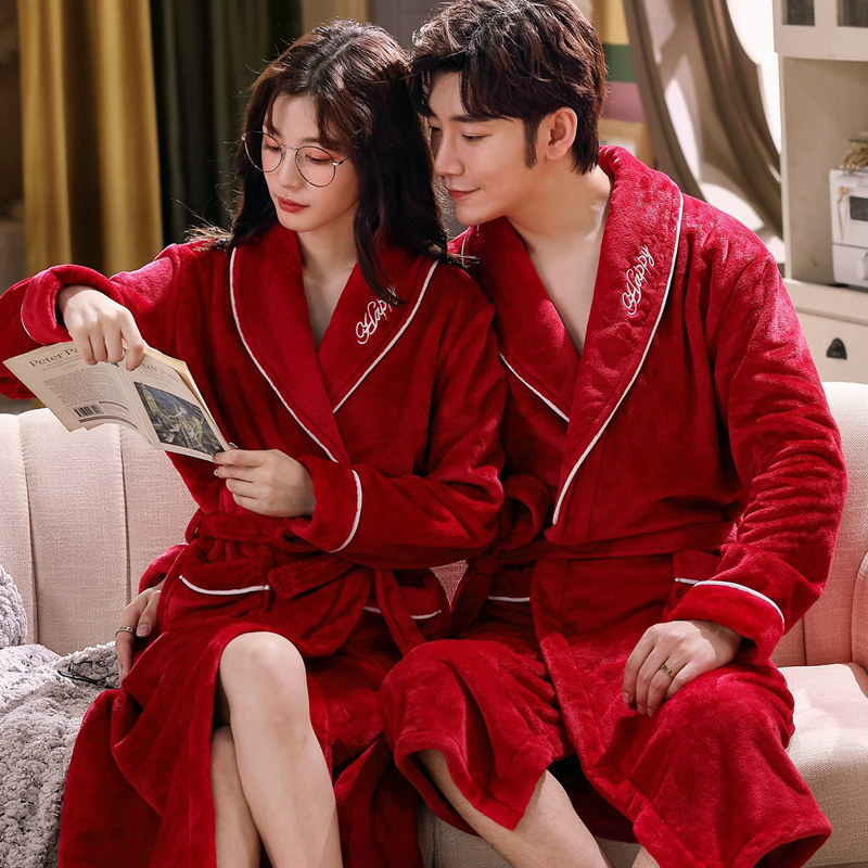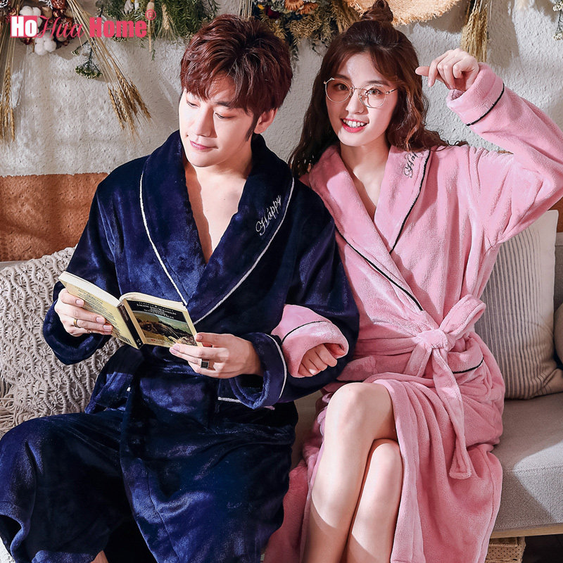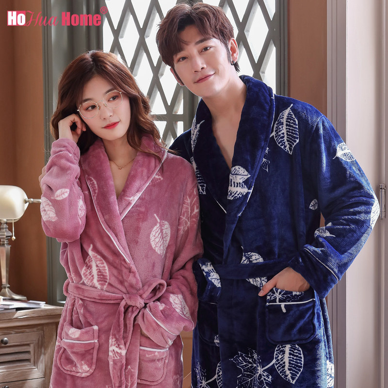 Couple sleeping robes women's autumn and winter long version plus suede thickened coral suede sleepwear male bathrobe flannel for a couple of spring and autumn winter