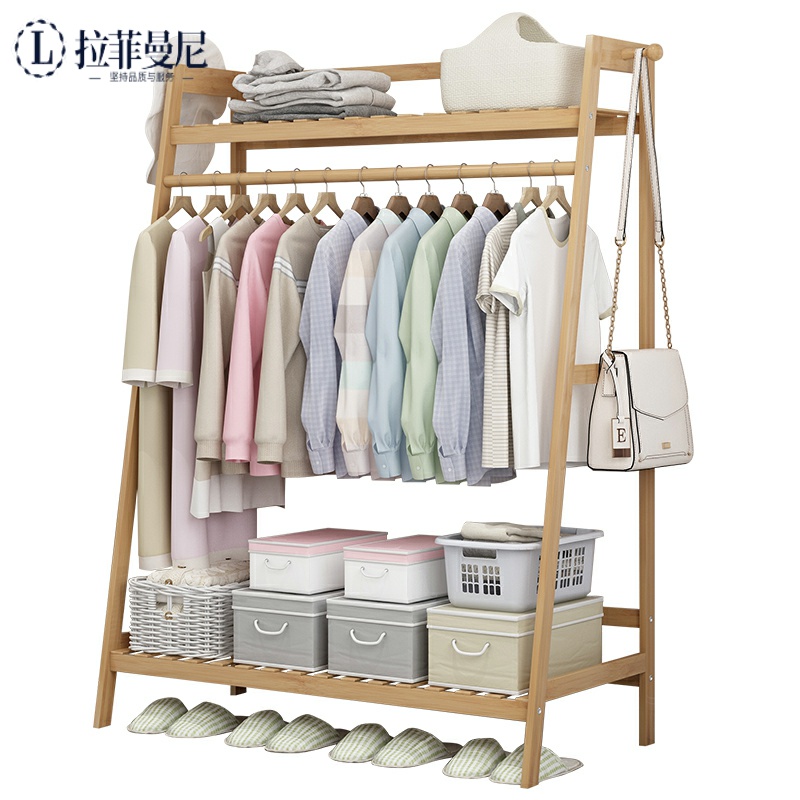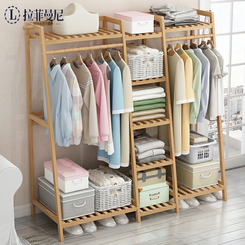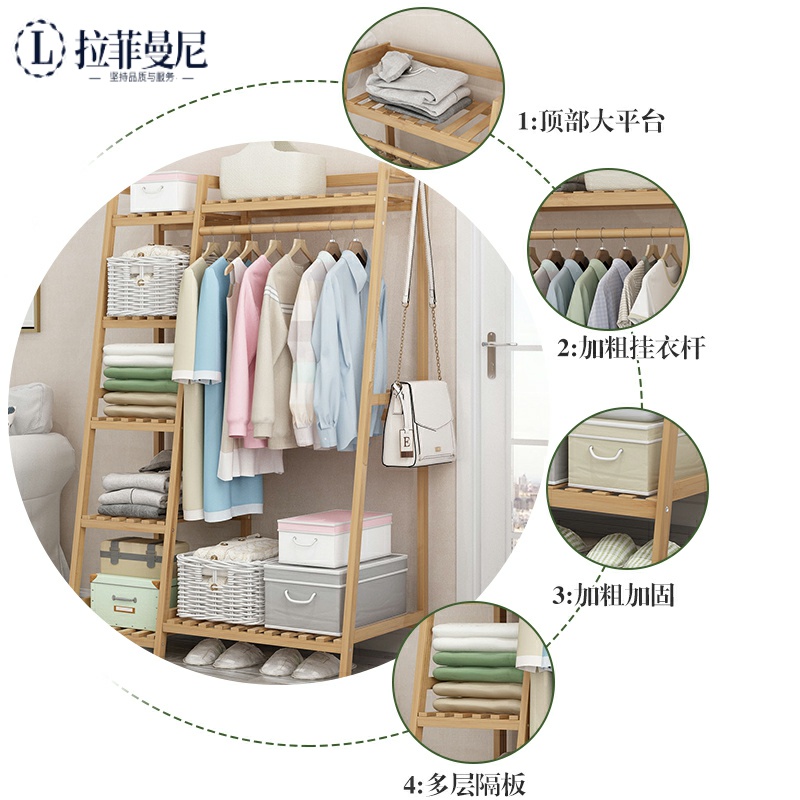 Home Ground Solid Wood Cloths Hood Bedroom Ins Wind Small Family Type Hung Hanger Easy To Contain Multilayer Shelving Shelf