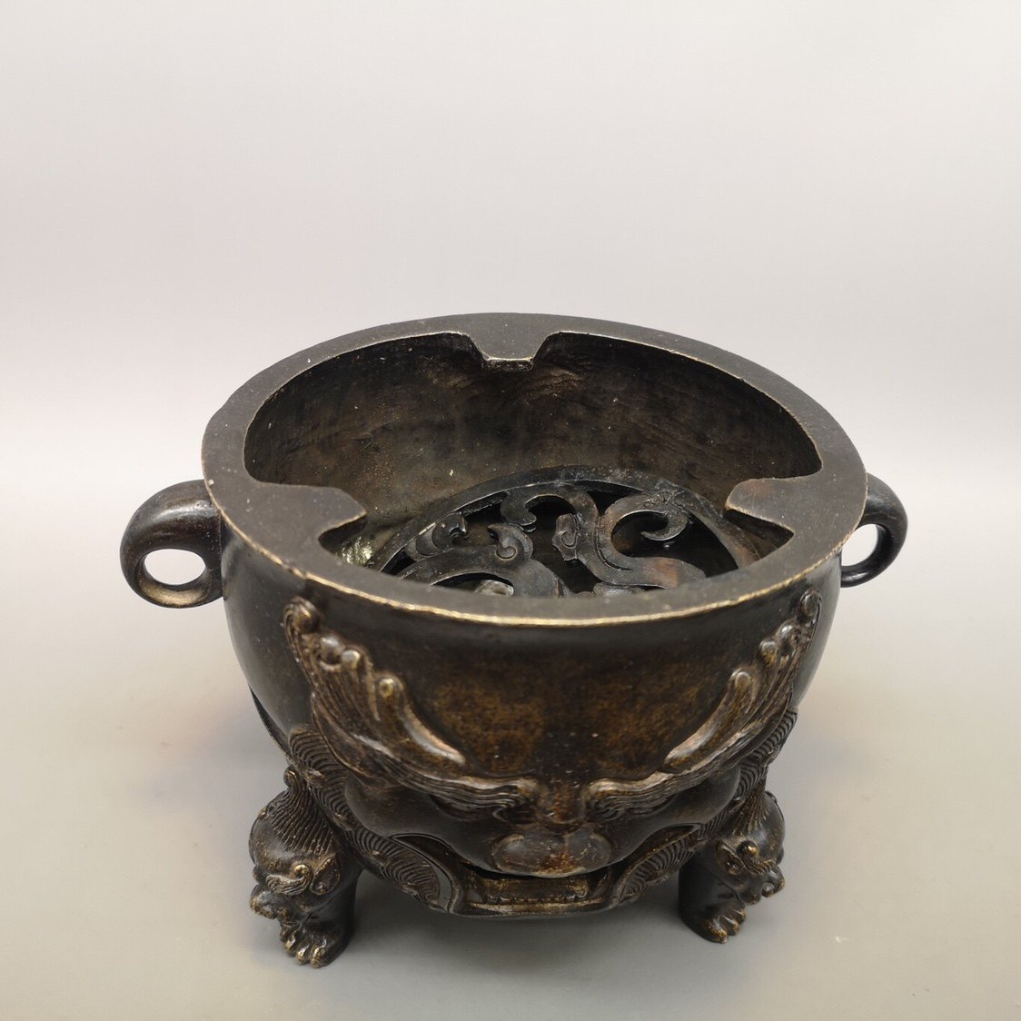 Imitation ancient pure copper Carbon Furnace Pendulum piece Animal head Carbon Oven Iron Fire Basin Charcoal Stove Tea Dao Furnace Supplies Retro Nostalgia Collection