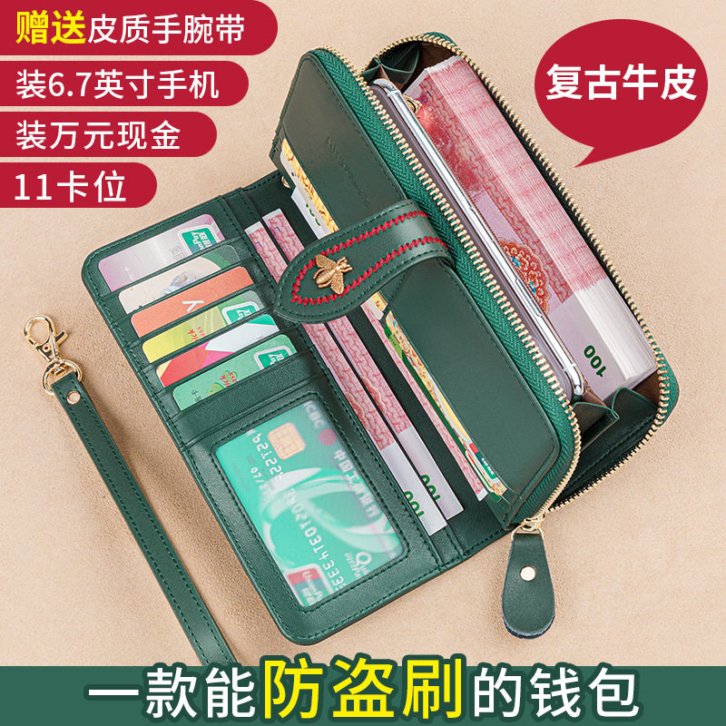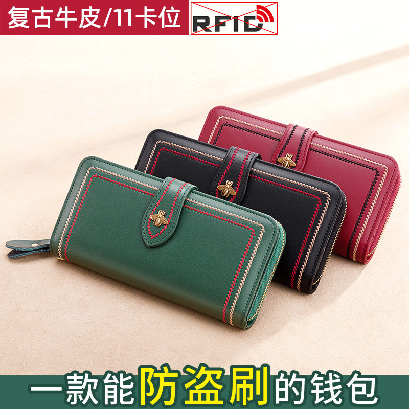 Wallet female leather long large capacity fashion ladies wallet 2022 new simple retro female handbag tide