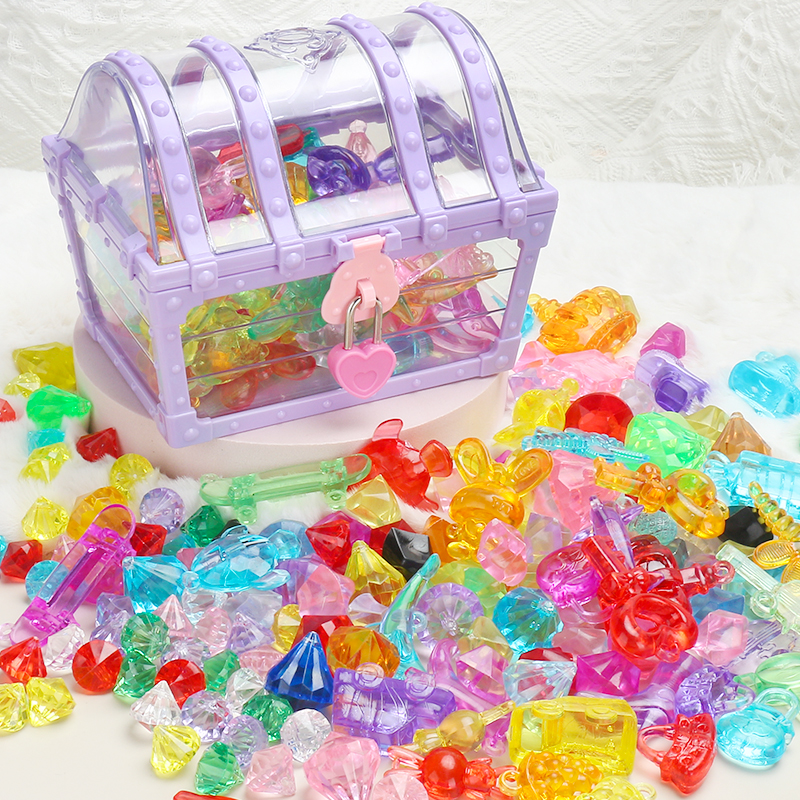 Children Jewel Crystal Toy Plastic Diamond Girl Handmade Diy Box Treasure Chest string Ball Birthday Gift Bayou Box