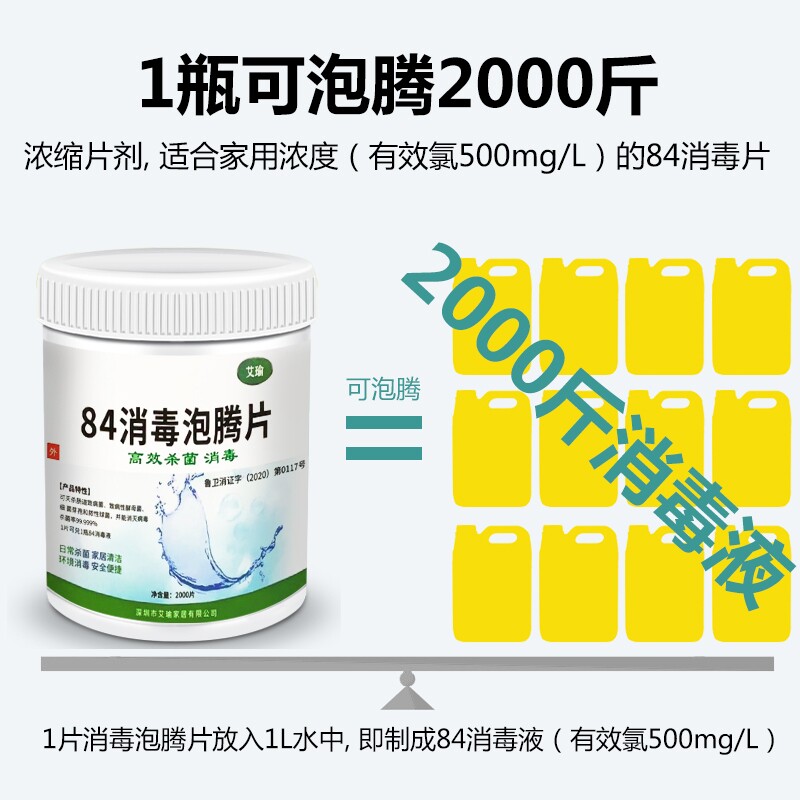 Chlorine-containing 84 disinfectant foaming ingot household indoor 2000 pieces of bleached clothing swimming pool sterilization floor disinfection tablets