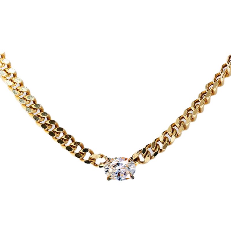 Xiqi Diamond Cuban Chain 18K Gold Egg Shape 20 Points One Diamond Necklace Single Diamond Clavicle Chain Women's Rough Trend ins