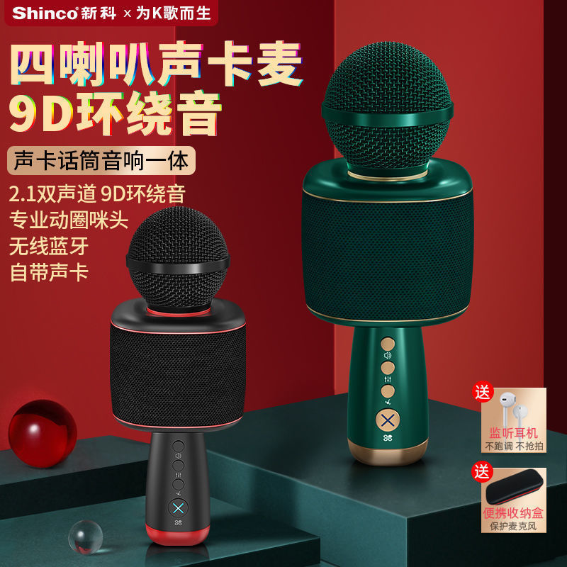 (Four speakers sound) Xinke sound card microphone audio integrated microphone national mobile phone karaoke entertainment special wireless bluetooth home TV children's singing artifact all-round wheat small dome