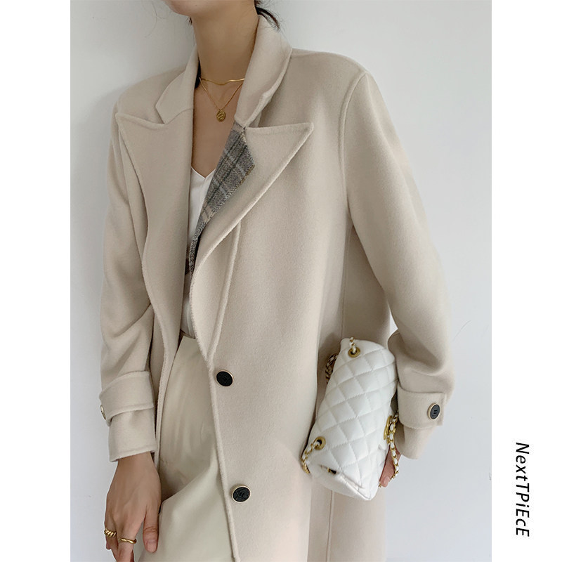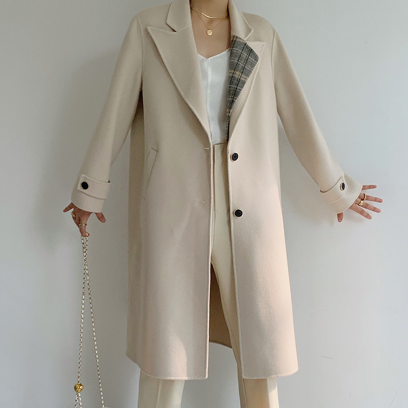 2021 autumn and winter new fur coats women's double face cashmere large coat with long version of wool advanced senses double face