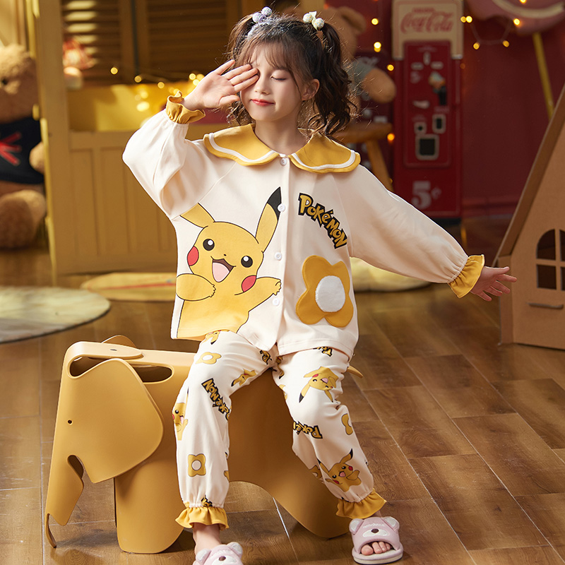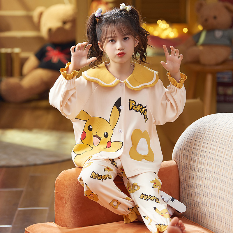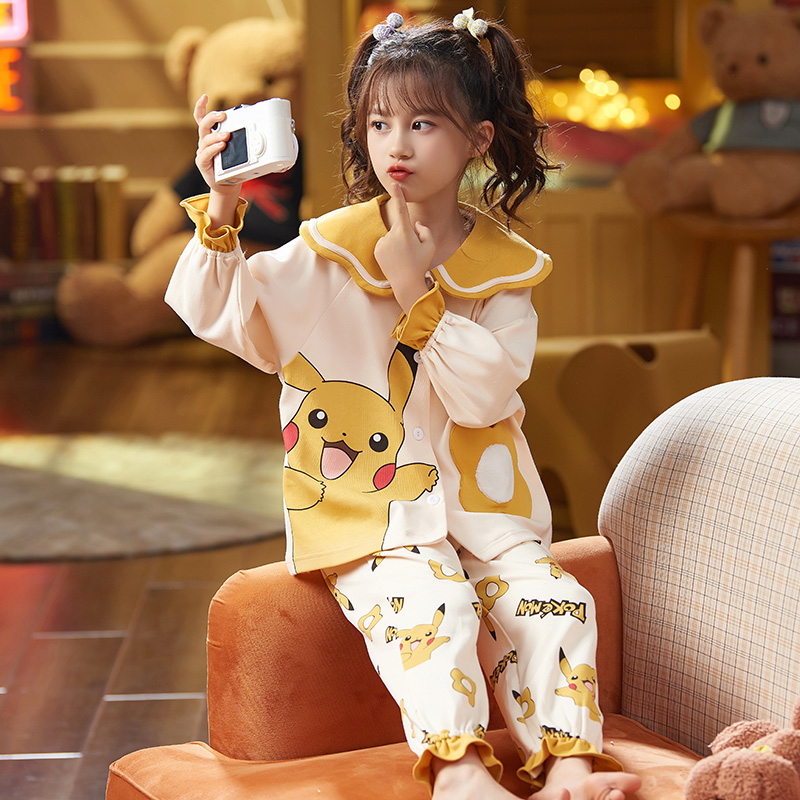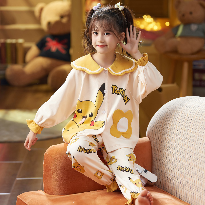 Girls' pajamas spring and autumn pure cotton thin long-sleeved suit children's little girl princess style cartoon big children's home clothes