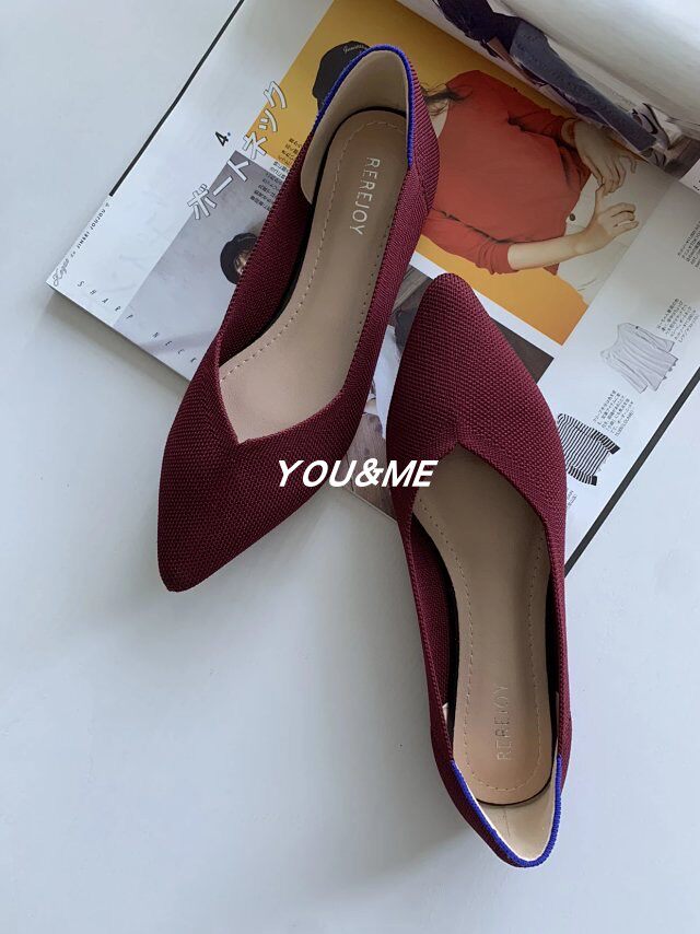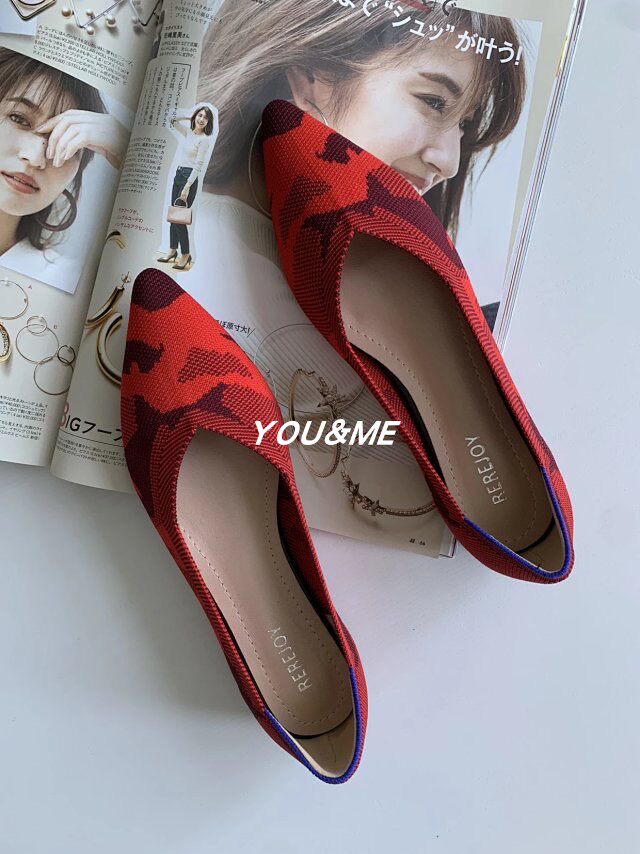Comfortable, versatile, breathable, fly-woven elastic cloth, pointed toe, flat bottom, color commuting, leisure, shallow mouth, color matching single shoes, multi-color