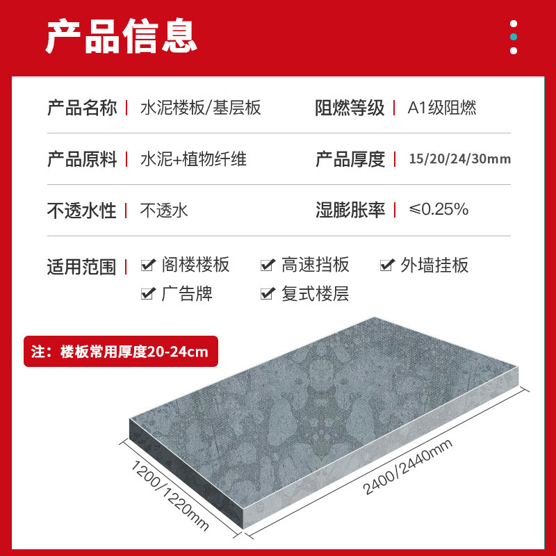 20mm cement pressure board attic floor LOFT steel structure cement fiber board floor load-bearing board calcium silicate board