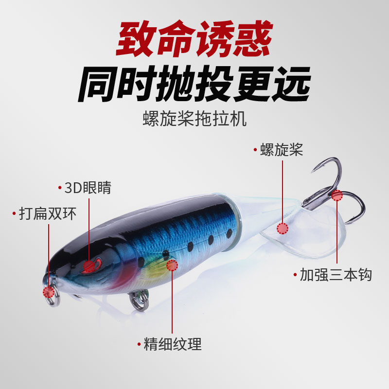 Hengjialuya fake bait floating water pencil tractor water surface system propeller freshwater fishing cocked mouth bass blackfish long shot
