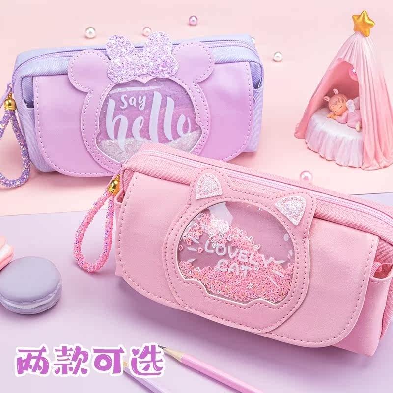 Net Red Beautiful Early High School Decompression Streaming Sand Writing Case 2021 New large capacity Adolescent Hearts Elementary School Students