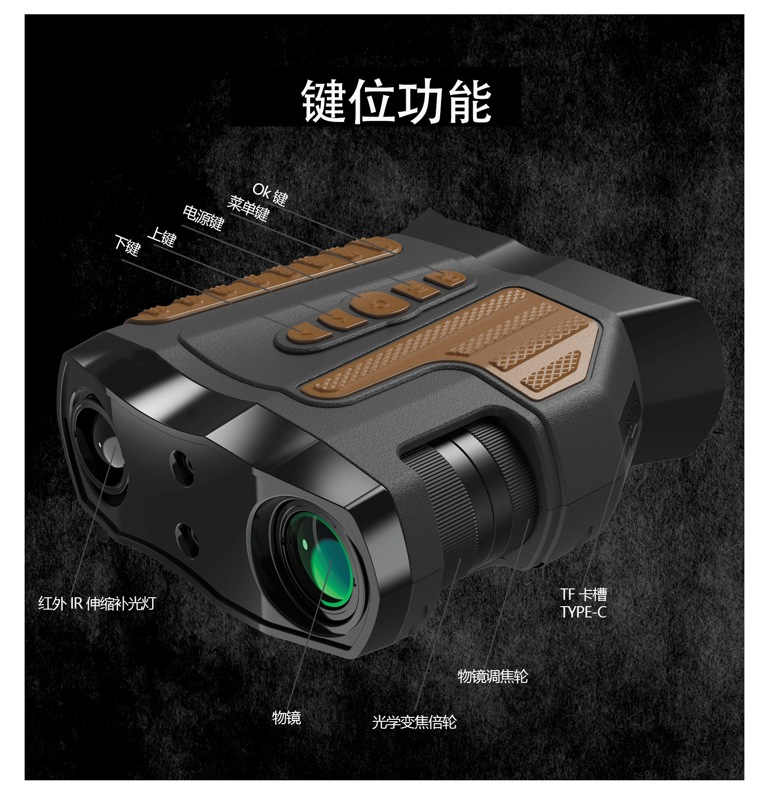 Low-light all-black optical zoom infrared night vision built-in lithium battery binoculars zoom HD telescope non-thermal imaging