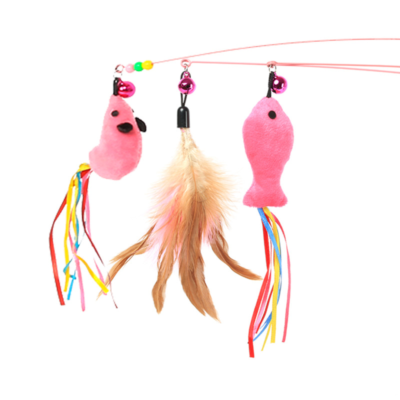 Teasing the cat stick steel wire long pole wire with feather replacement head fishing rod teasing the cat-stick mouse bell resistant to bite the young cat toy