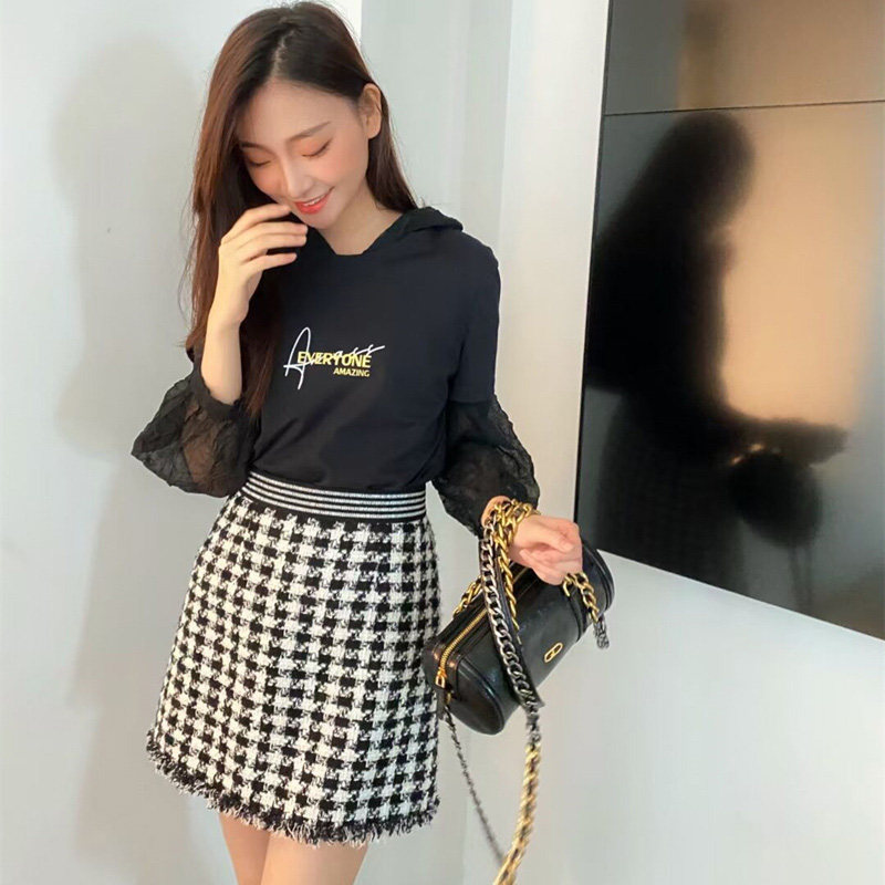 Pin Gedi's new spring counter with the same style in 2022 with fringe houndstooth eyelashes edge A word skirt female