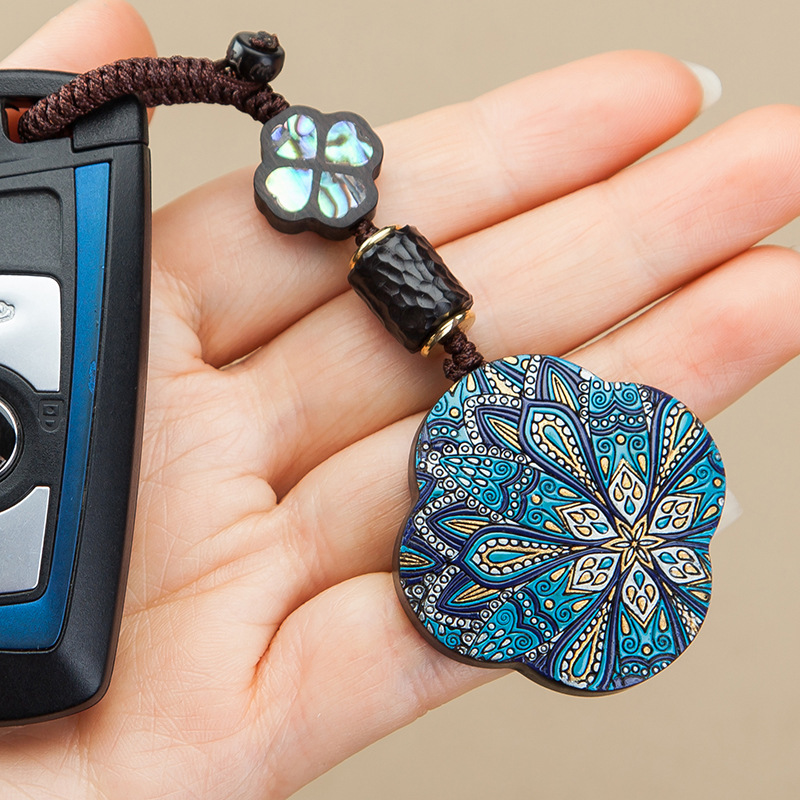 Hand-painted sandalwood key button
