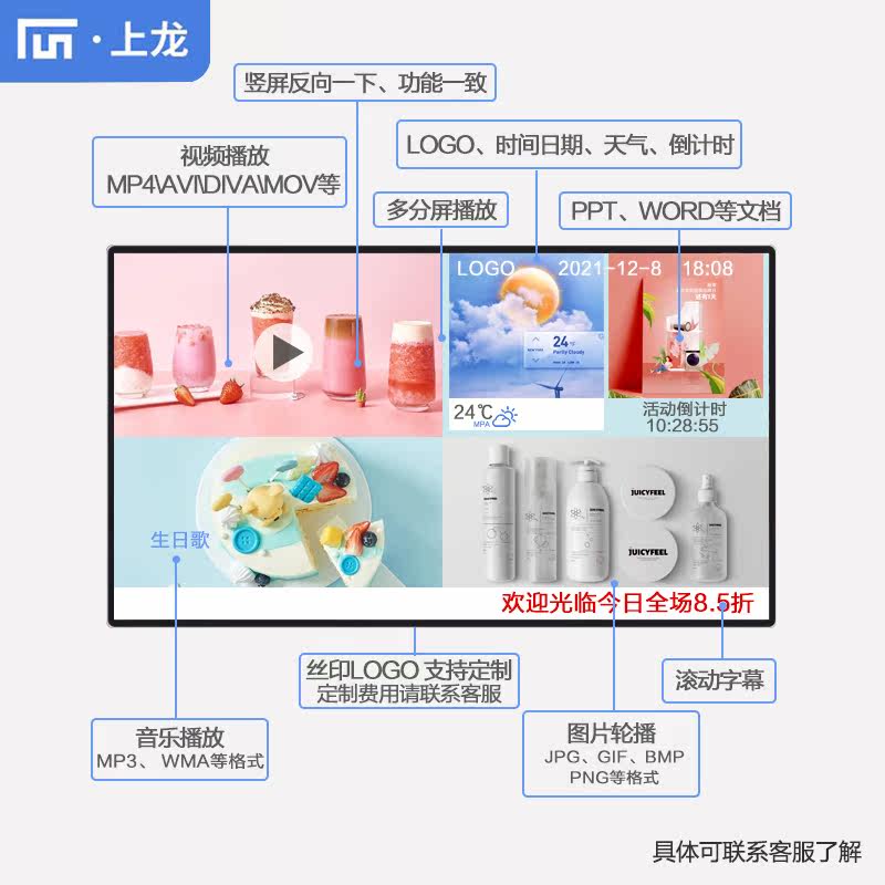 Shanglong wall-mounted advertising machine vertical display 22 24 27 32 43 49 55 65 inches Android system smart network version wifi capacitive query playback computer integration
