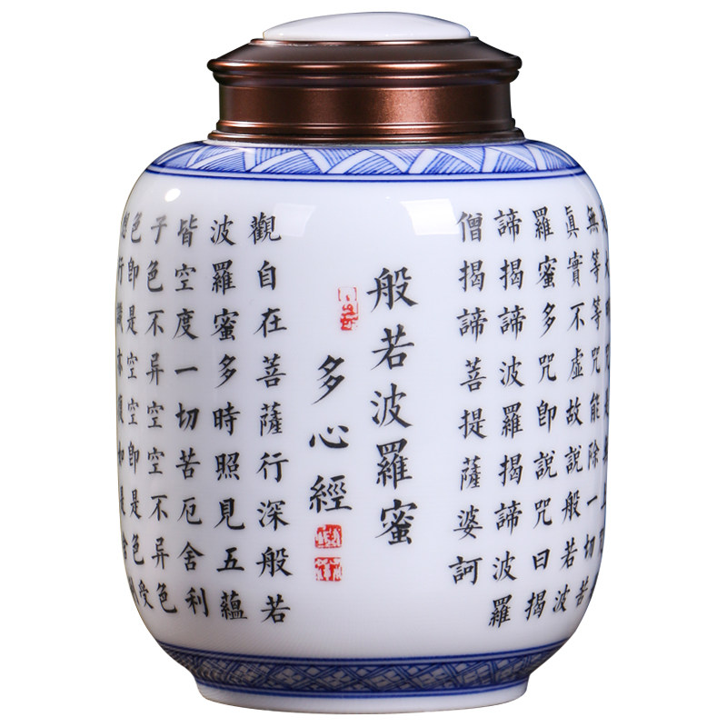 Heart Sutra ceramic ceramic tea pot small sealed pot Pu'er storage storage tea box household ceramic wake-up tea pot