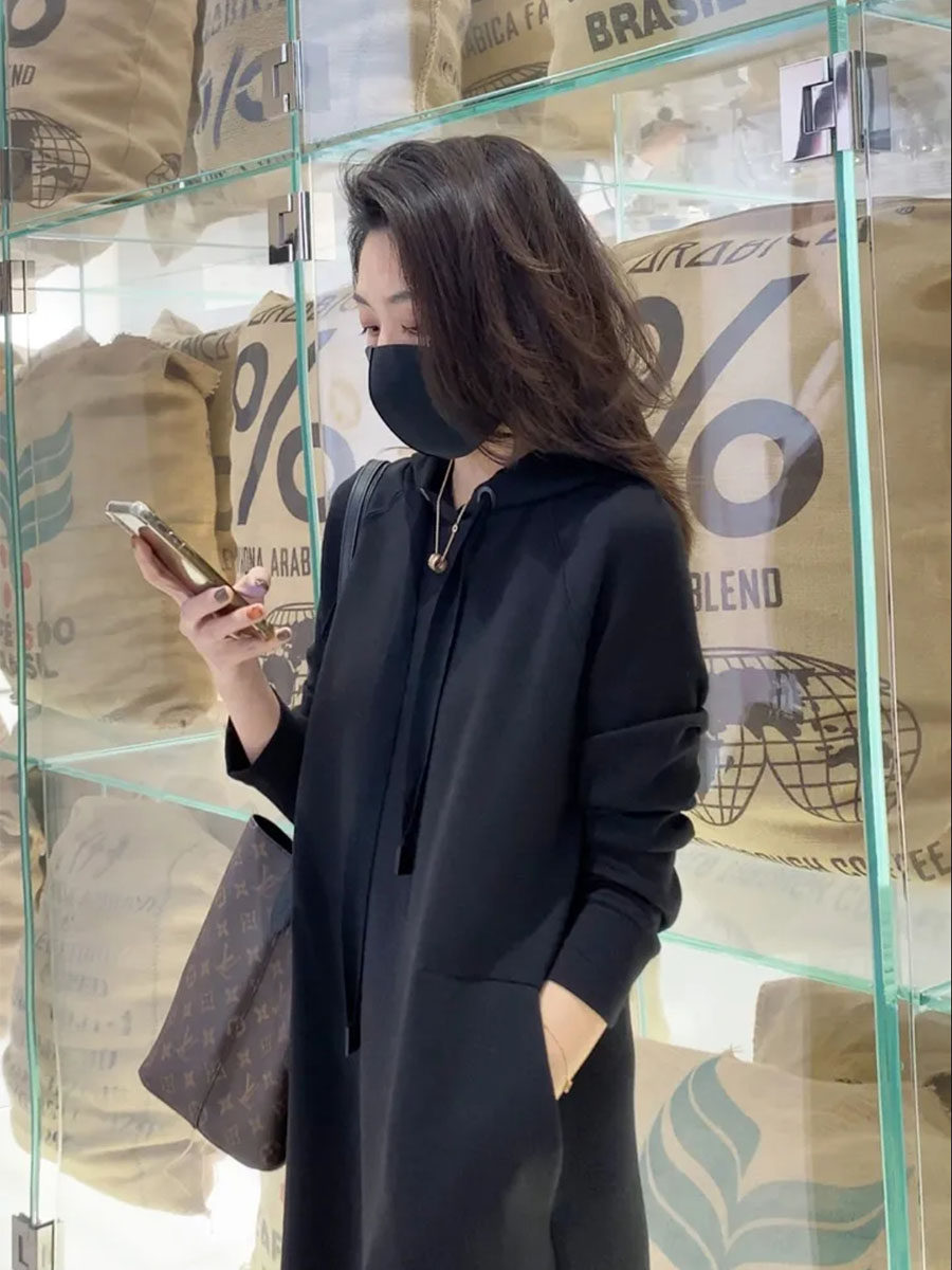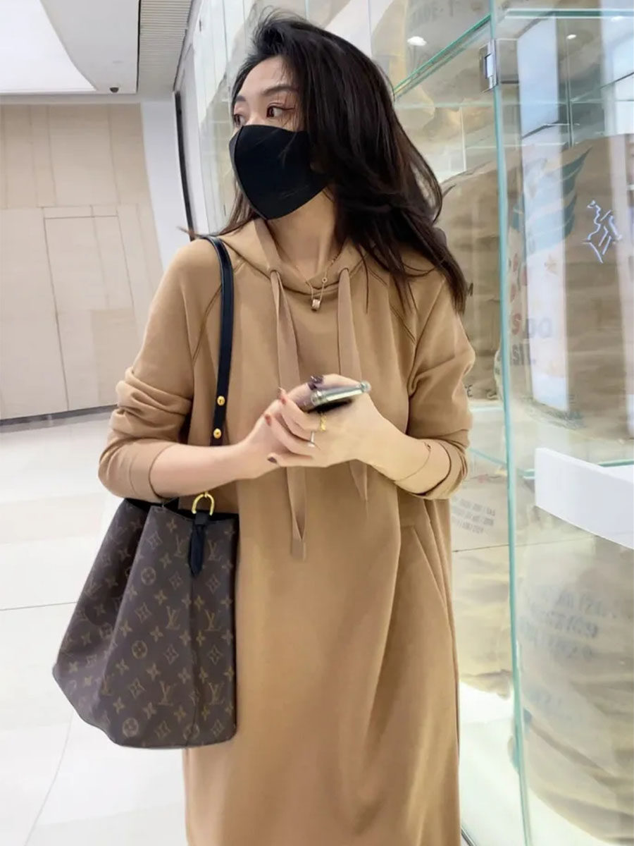 Superior Sense Temperament Casual Tandem Dress Woman 2023 Fall new Lianhood Loose Clothing Mid long Skirt-Taobao