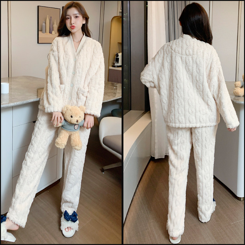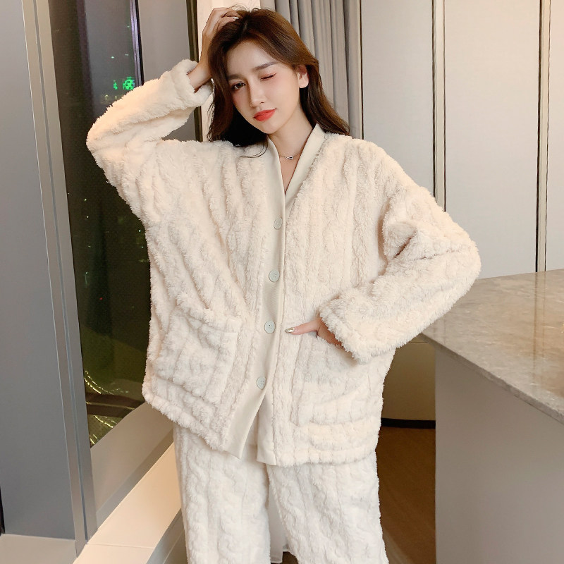 Pajamas spring and autumn women's long-sleeved velvet thick coral fleece autumn and winter cute flannel winter homewear suit