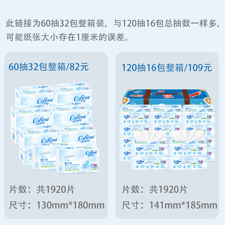 Kexinrou V9 baby soft paper towels 120 pumps 16 packs with the same number of baby paper cloud soft towels whole box family 60 pumps