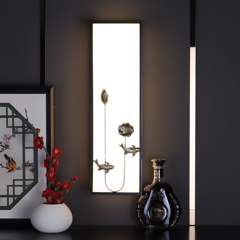 New Chinese style wall lamp all copper living room lamp modern TV background wall lamp bedroom bedside lamp Zen Chinese style lamps