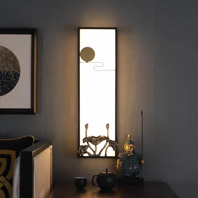 New Chinese style marble wall lamp modern living room TV background wall lamp long strip all copper aisle corridor bedroom bedside lamp