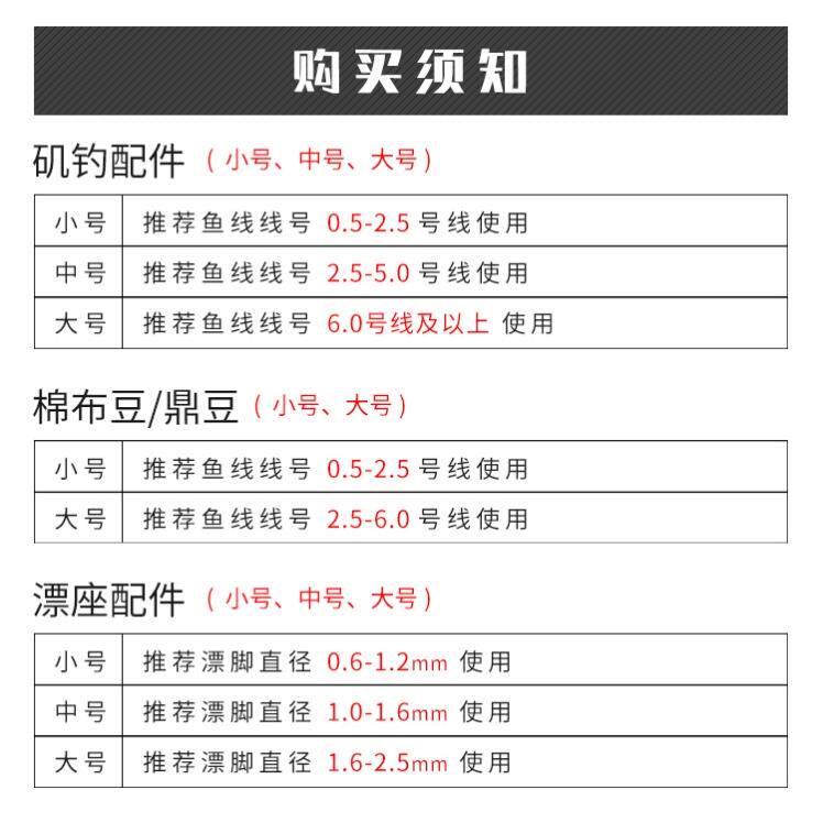 Rock fishing line group (normal) is suitable for 2 0-6 0 rock fishing line group (standard small size) suitable for 0 5-2 rock fishing line group (standard medium size) suitable for 2 5-5 rock fishing line group (standard large size)