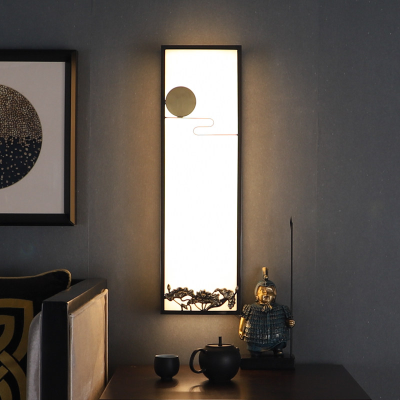 New Chinese cloud stone wall lamp modern minimalist rectangular living room dining room dining room TV background wall full copper bed head lamp