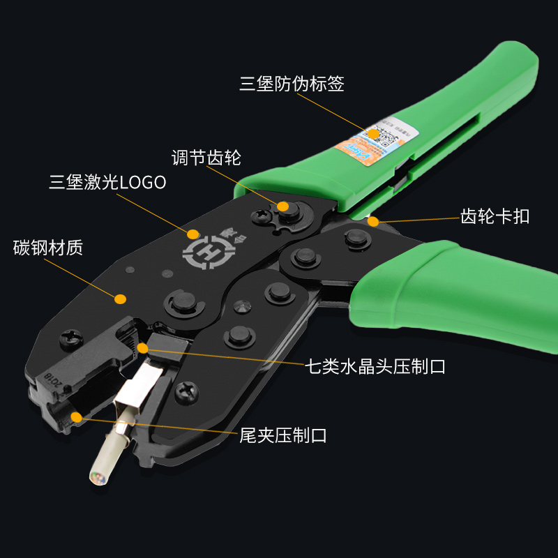 Three Fort Seven Class 10,000 trillion Crystal Head Net Route Crimping Pliers Press HT-236Q1C Q1B Professional Level 7 Dovetail Clip Shielded Crystal Head Computer Connector Crimper