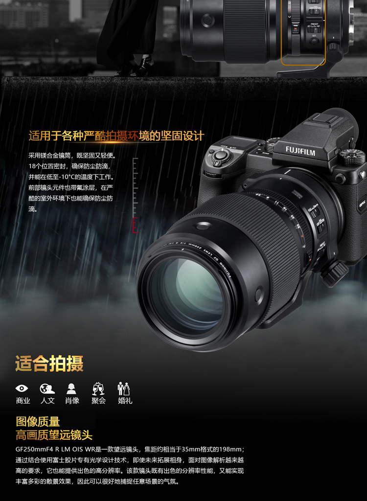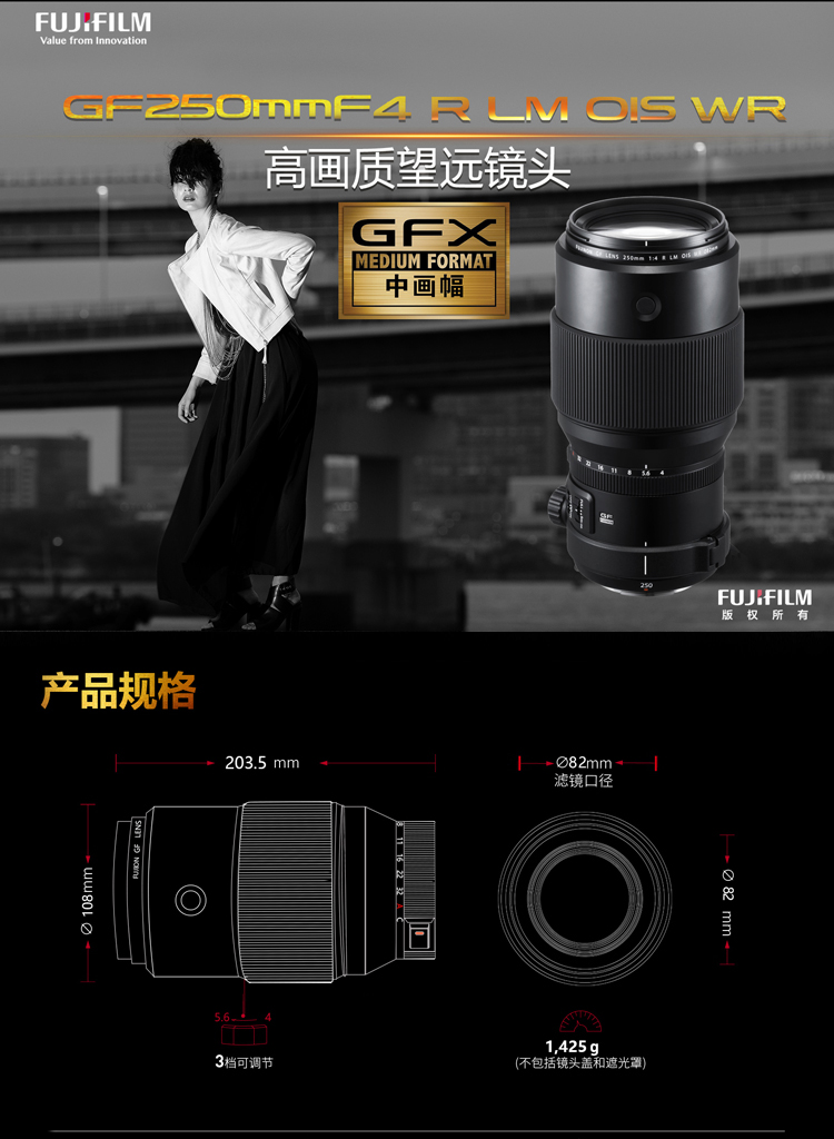 Fujifilm Fuji GF250mmF4 R LM OIS WR medium frame GFX100S 50S 250 lens