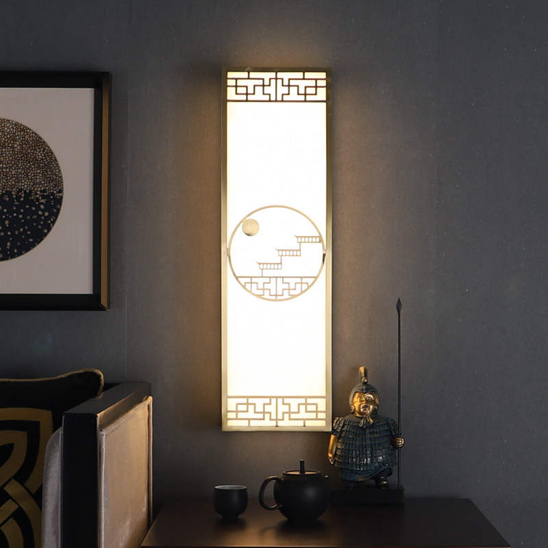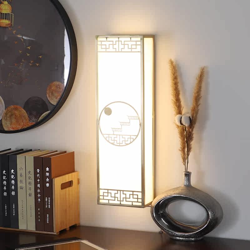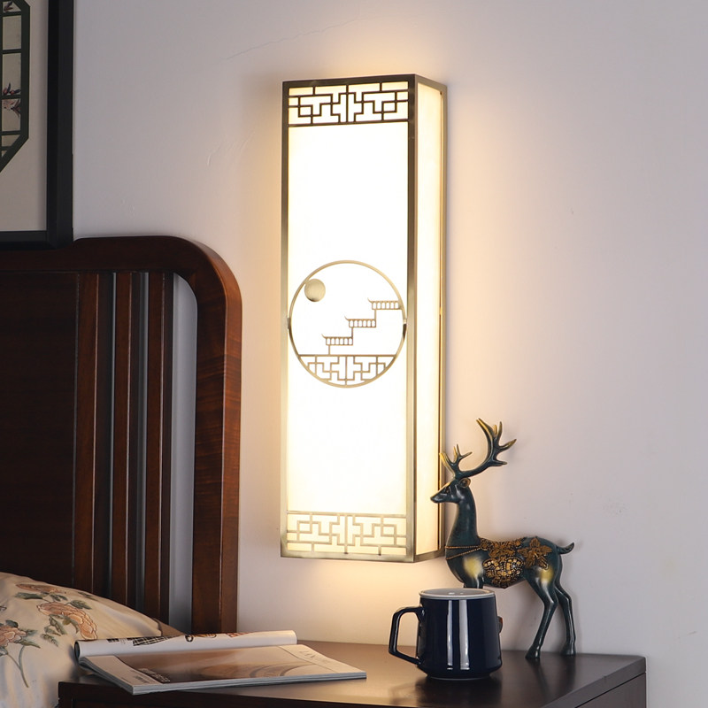 New Chinese-style wall lamp strip full copper marble light luxury high-end living room decoration TV background wall lamp bedroom bedside lamp