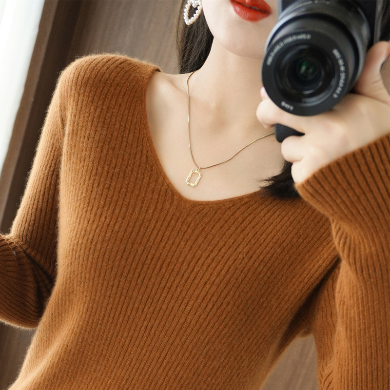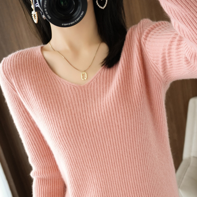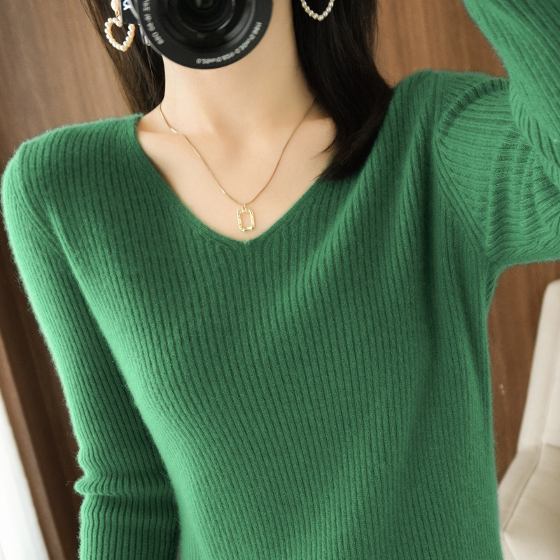 New V-neck knitwear women's pullover sweater slim solid color non-cashmere long sleeve bottoming Joker autumn and winter