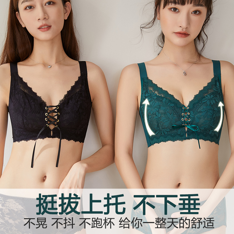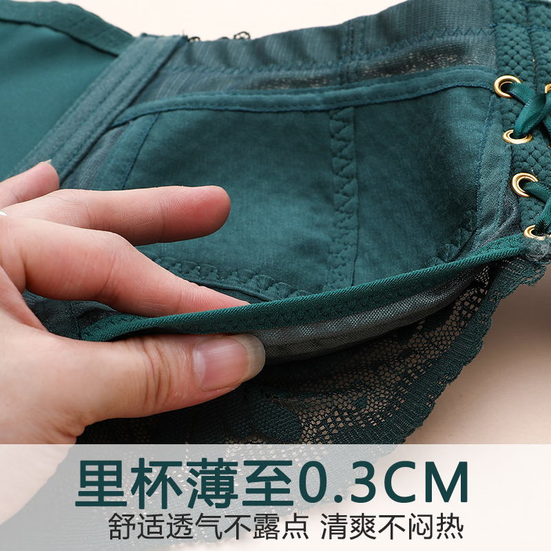 Underwear women's big breasts show small gathering adjustment type anti-expansion sagging closed pair breasts full cup ultra-thin non-sponge bra