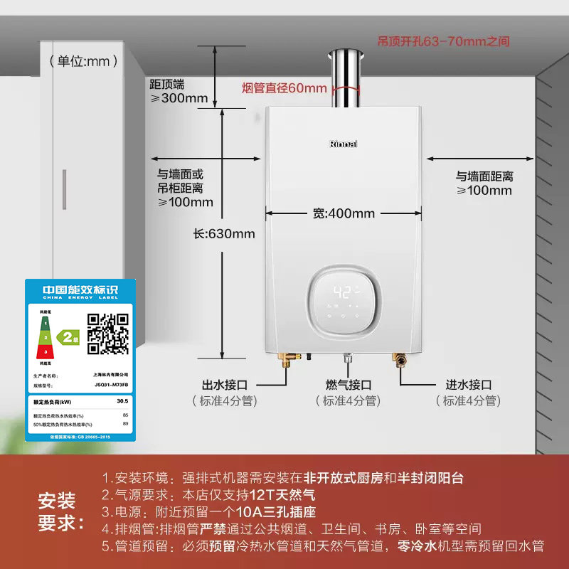 Rinne gas water heater Home thermostatic natural gas pressurization and safe beauty and skin bathing official 16 litres M73FB-Taobao