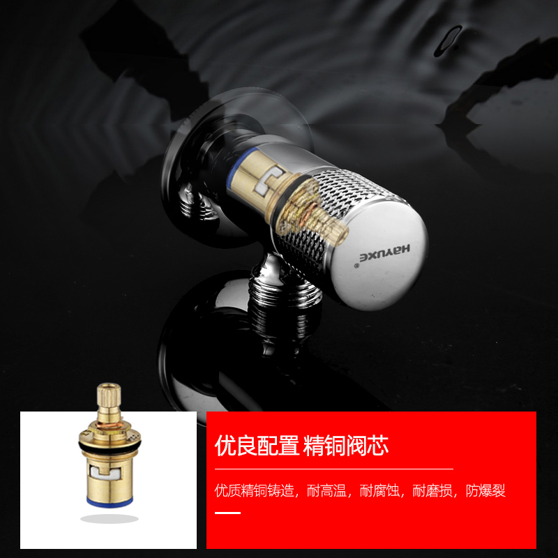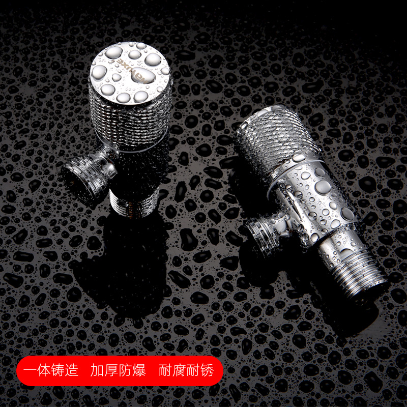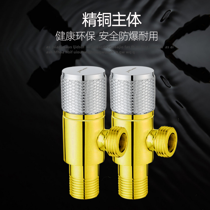 Thickened full copper body triangle valve hot and cold water switch household toilet water stop valve water heater eight-character valve 4 points universal