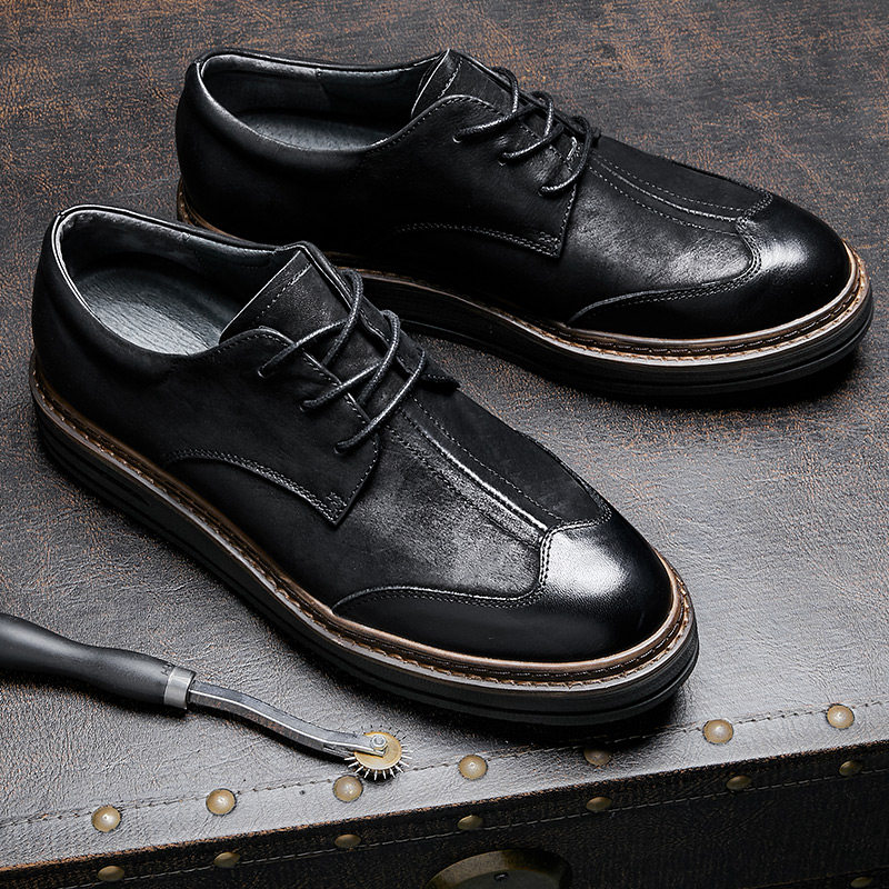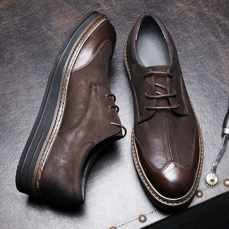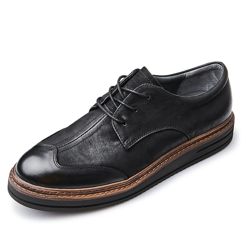 Leisure shoes male genuine leather soft leather autumn new trend hundred thick soles with British wind business bull skin men shoes