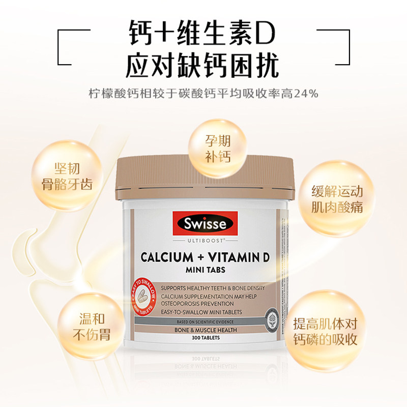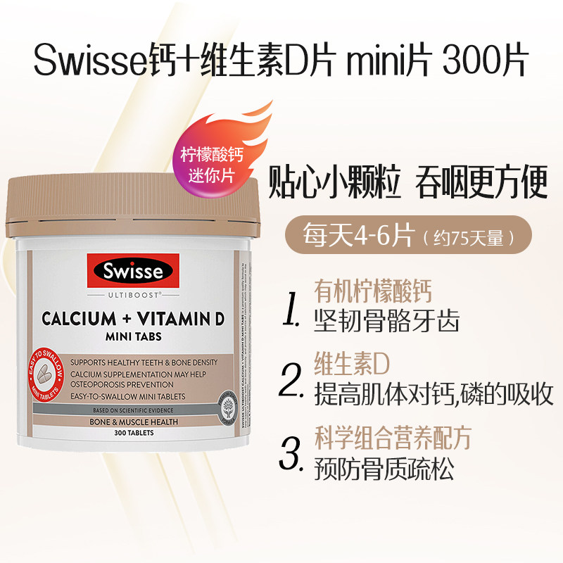 Australian Swisse calcium tablets calcium citrate vd vitamin Dmini tablets mini calcium middle and old pregnant women 300 capsules