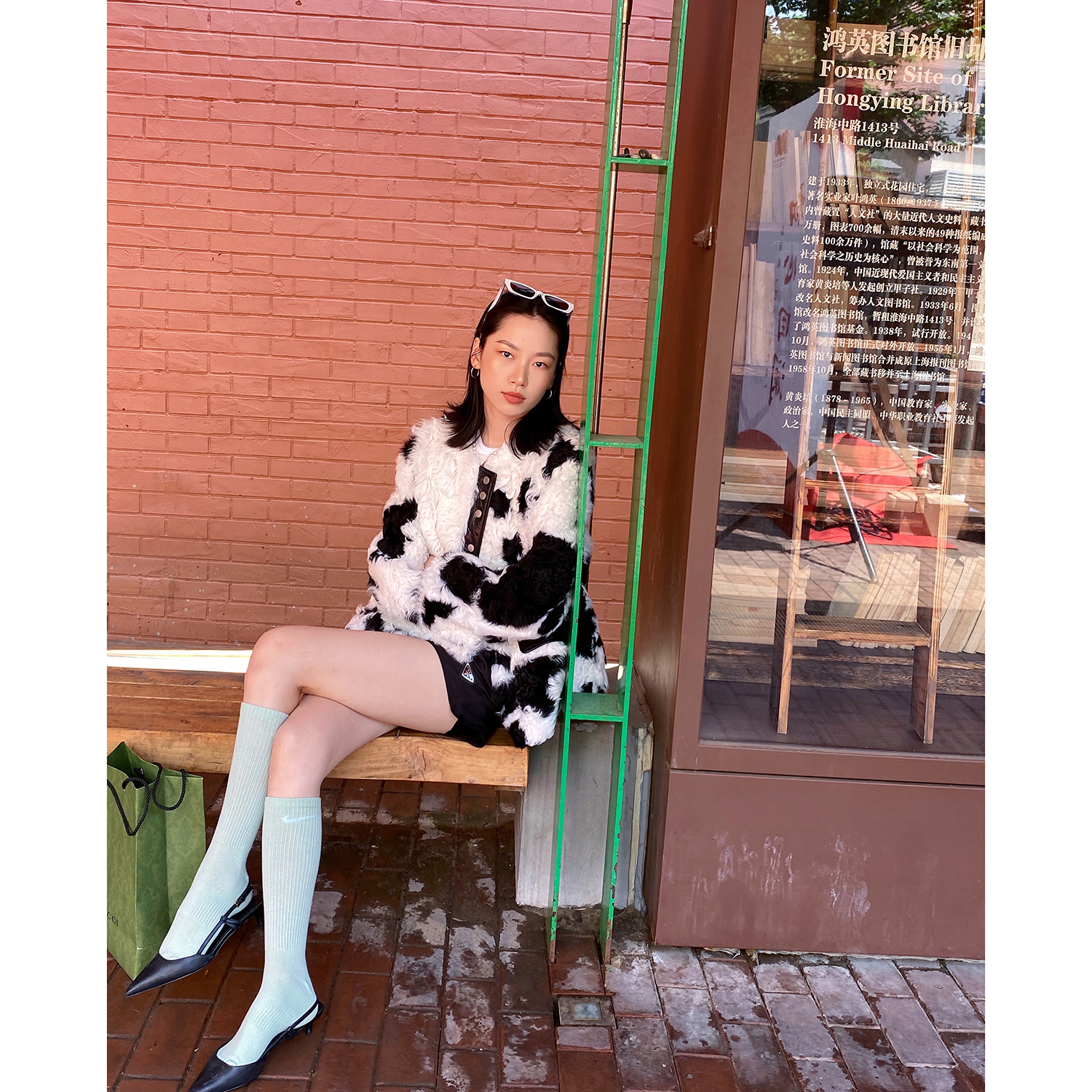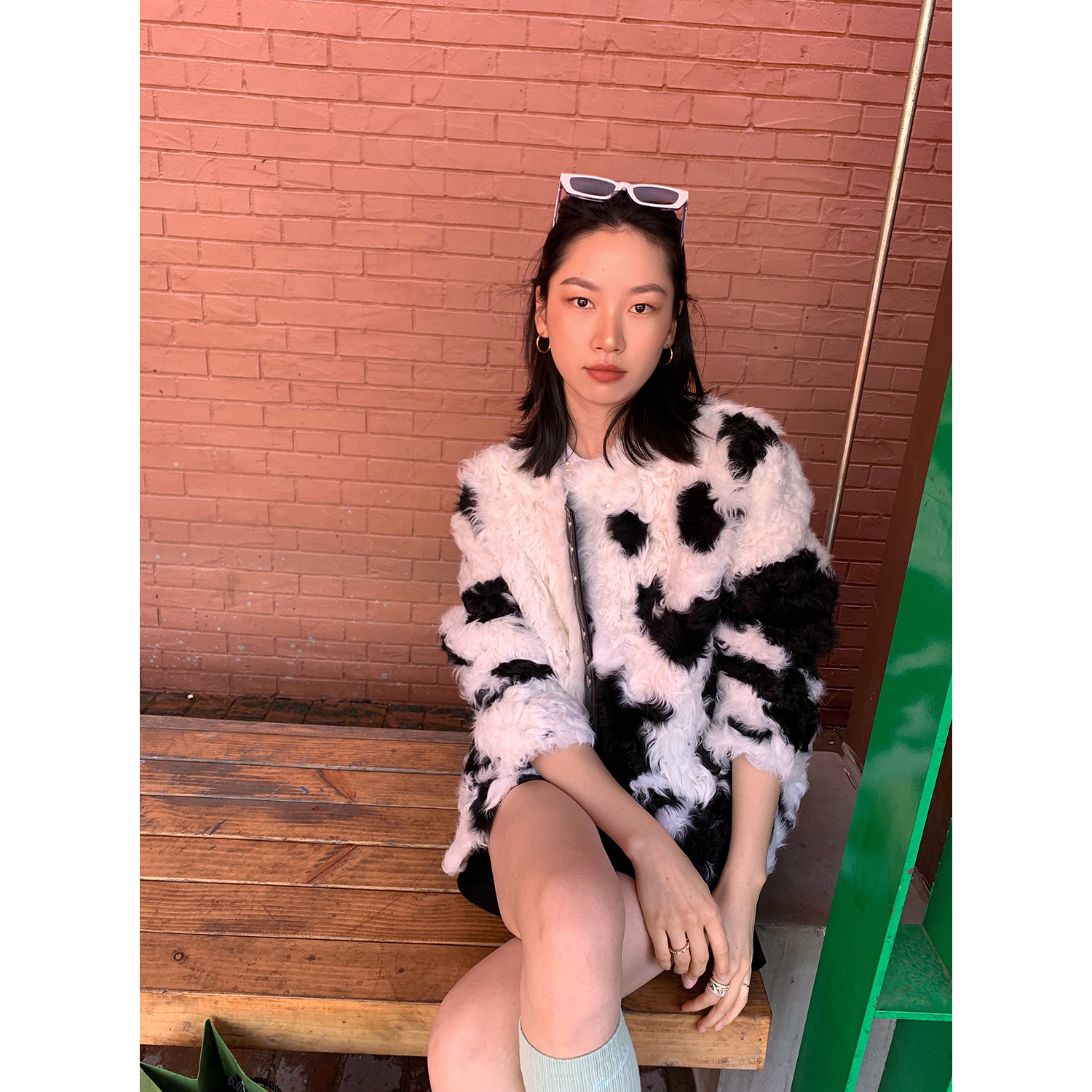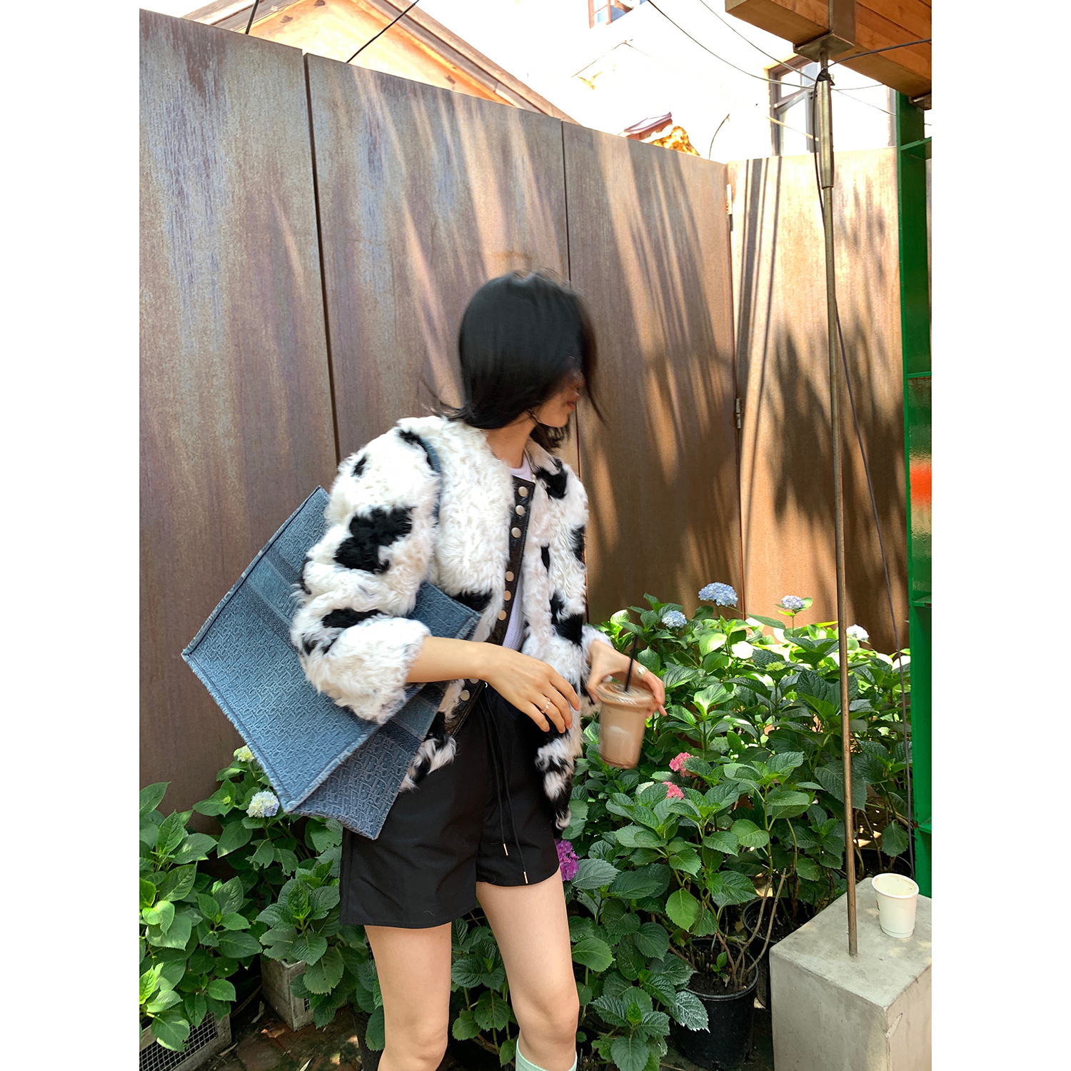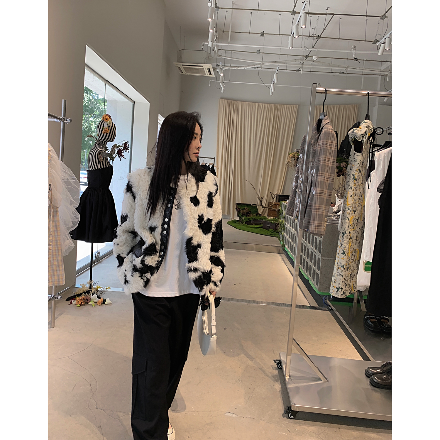 (Limited) Fu Zhien Cows Temptation Natural Black and White Flowers Imported Sheep Curly Fur All-in-One Fur Coat