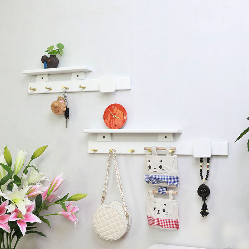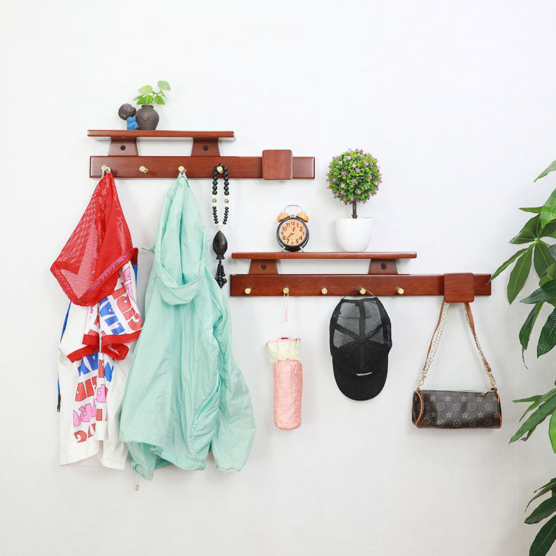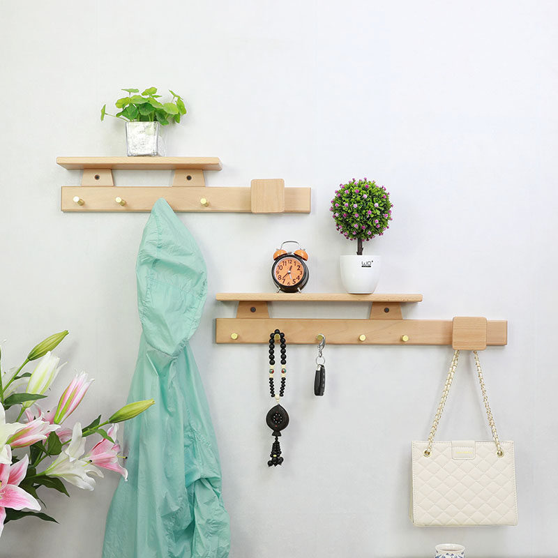 (Lingjie) Pure solid wood wall hanging hook rack wall hanging hanger hanging hook wooden door rear porch