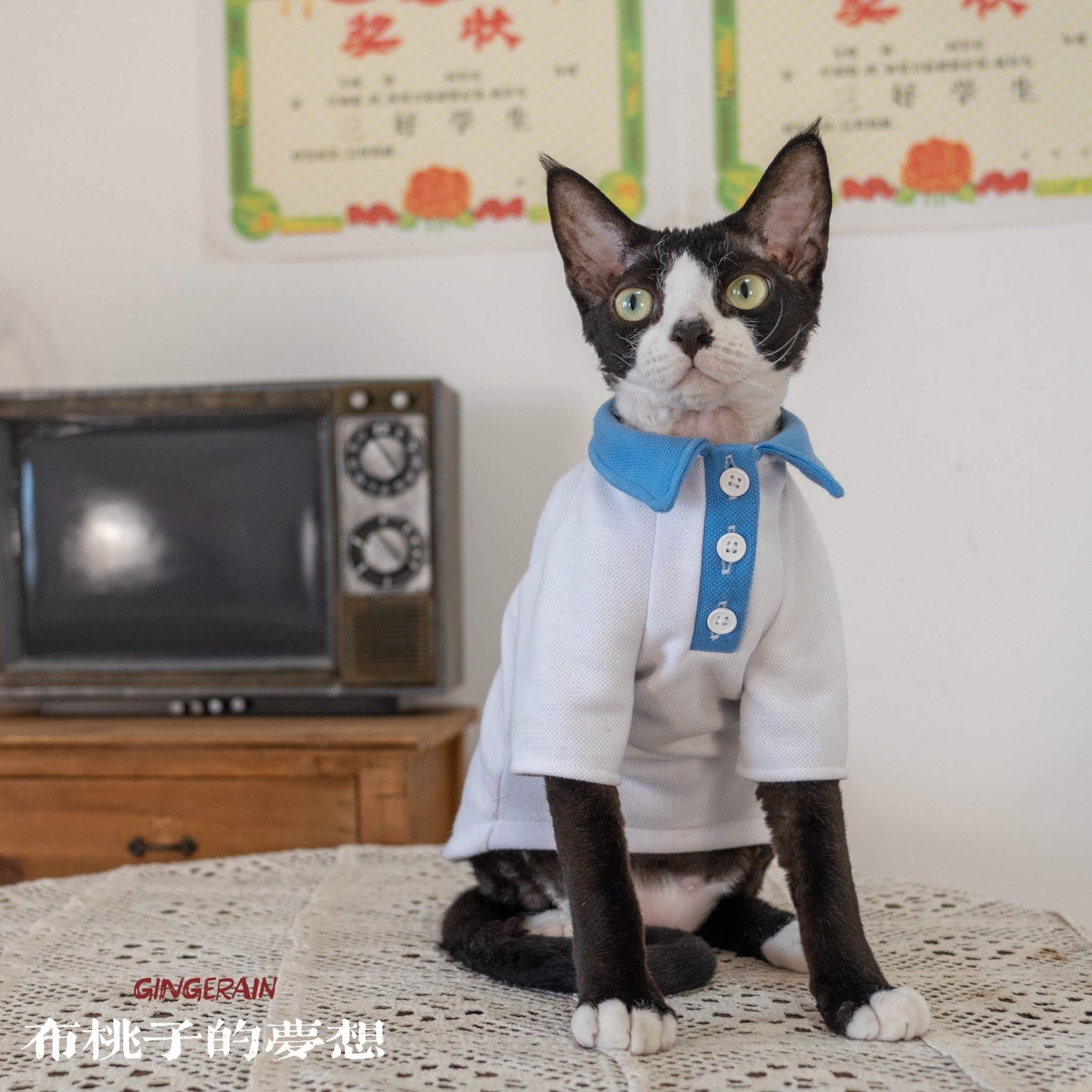 GINGERAIN German cat Abby East short hairless cat clothes middle school uniform kindergarten class clothes cotton breathable